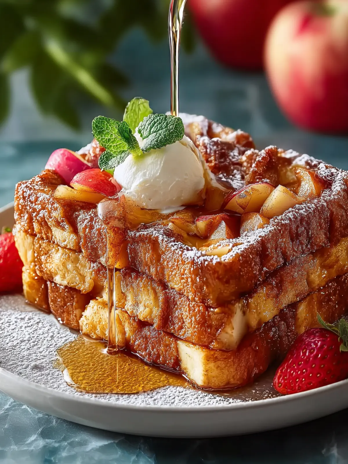 Comforting Flavors: The harmonious blend of sweet apples, warm cinnamon, and creamy custard creates an indulgent yet comforting dish, perfect for brunch or a lazy weekend breakfast.