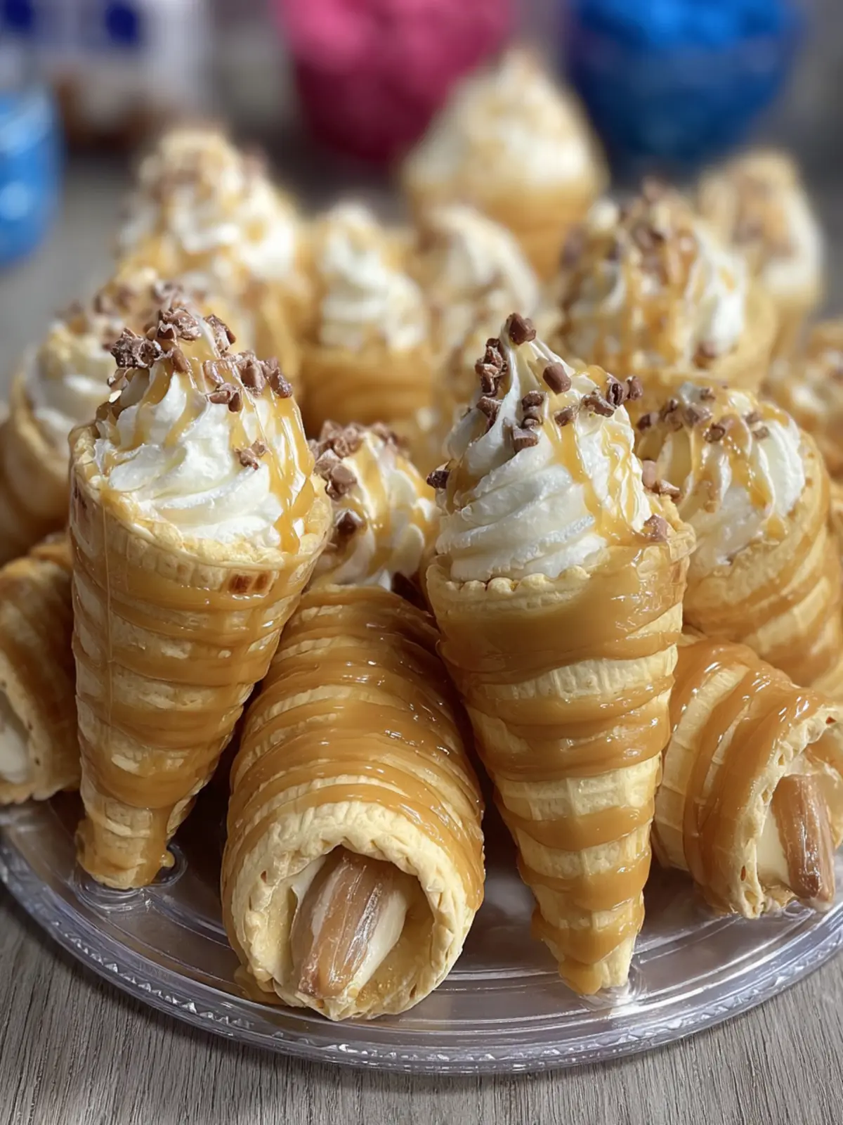 Caramel-Filled Pastry Cones Delight: Indulgent Homemade Bliss