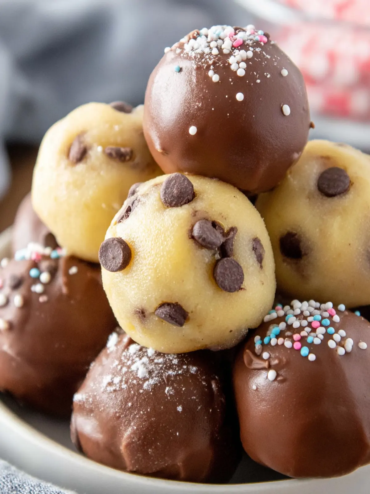 Pairings: Serve your cookie dough truffles alongside a scoop of vanilla ice cream or a dollop of whipped cream. The creaminess pairs perfectly with the rich, doughy texture.