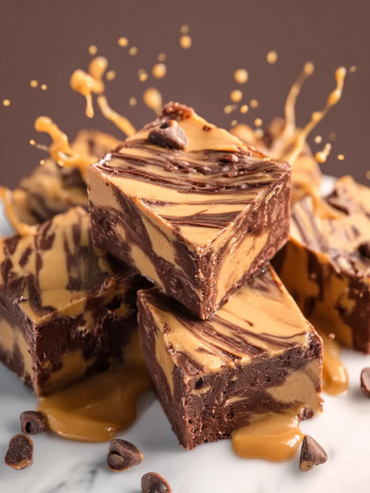 - Drizzle the melted peanut butter over the chocolate fudge.