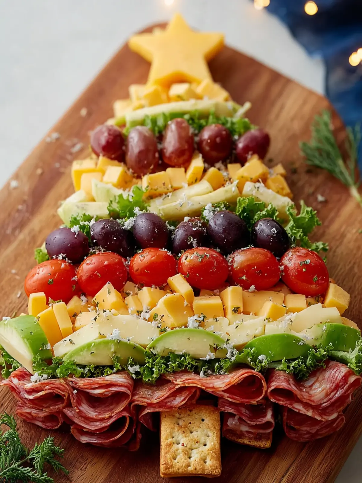 Aim for a nice balance. Pair hard cheeses with soft ones, salty meats with sweet fruits, and crunchy nuts with creamy dips. A variety of textures makes the Christmas Tree Shaped Charcuterie more exciting and enjoyable for everyone.