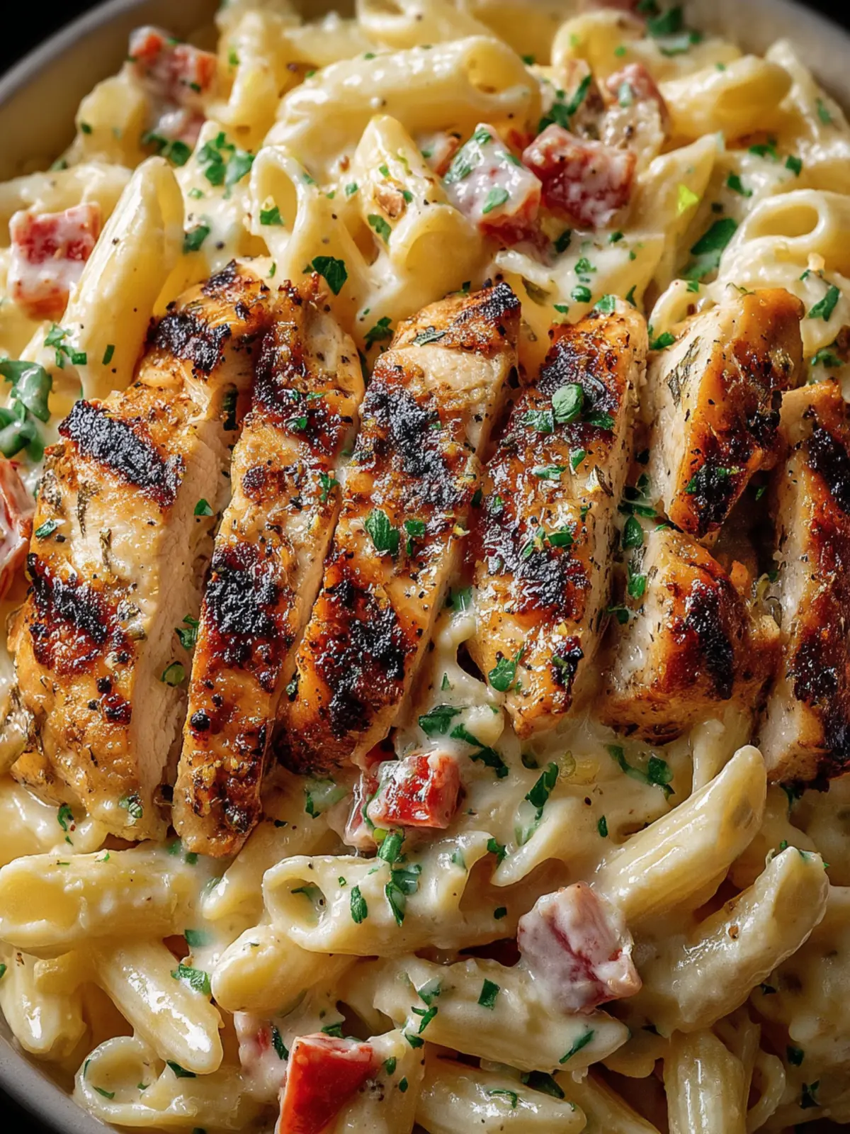 This creamy grilled chicken pasta is a delicious and satisfying meal that combines tender grilled chicken with perfectly cooked penne pasta in a rich and creamy sauce.