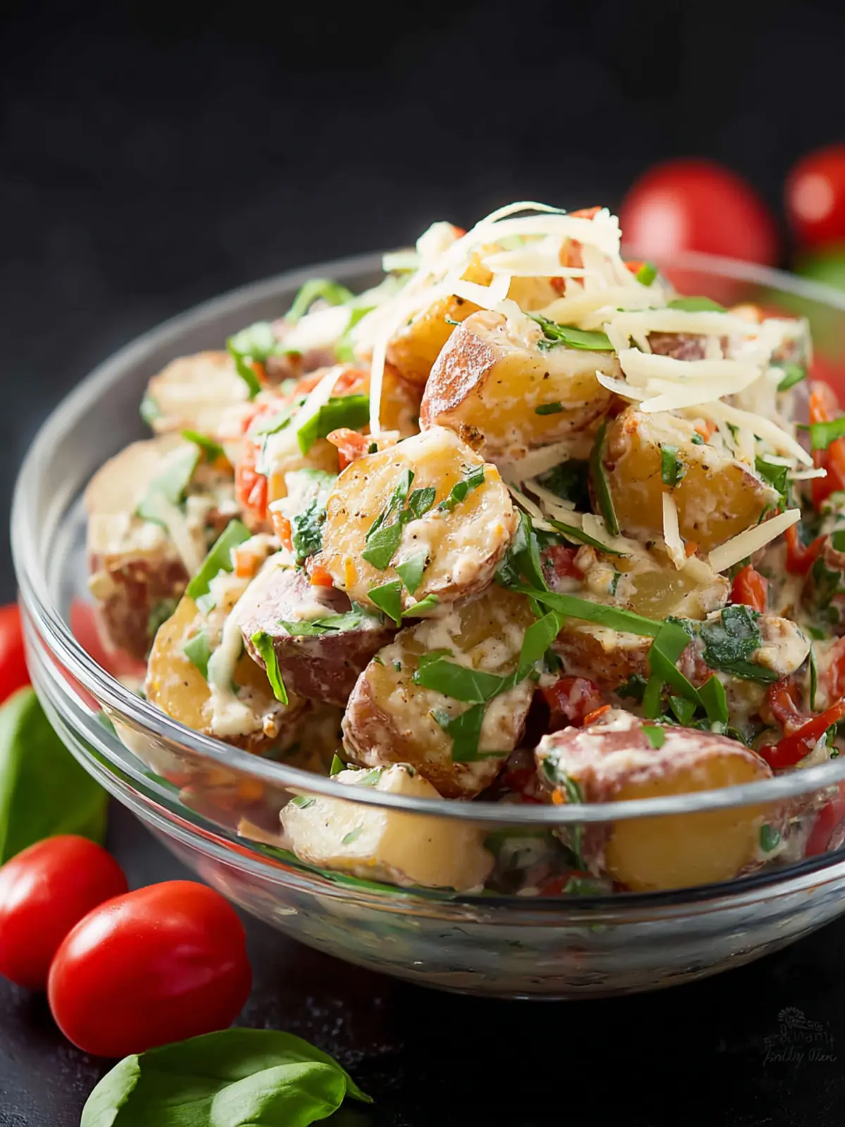 A refreshing potato salad perfect for any occasion, featuring spinach, pesto, and a light dressing.