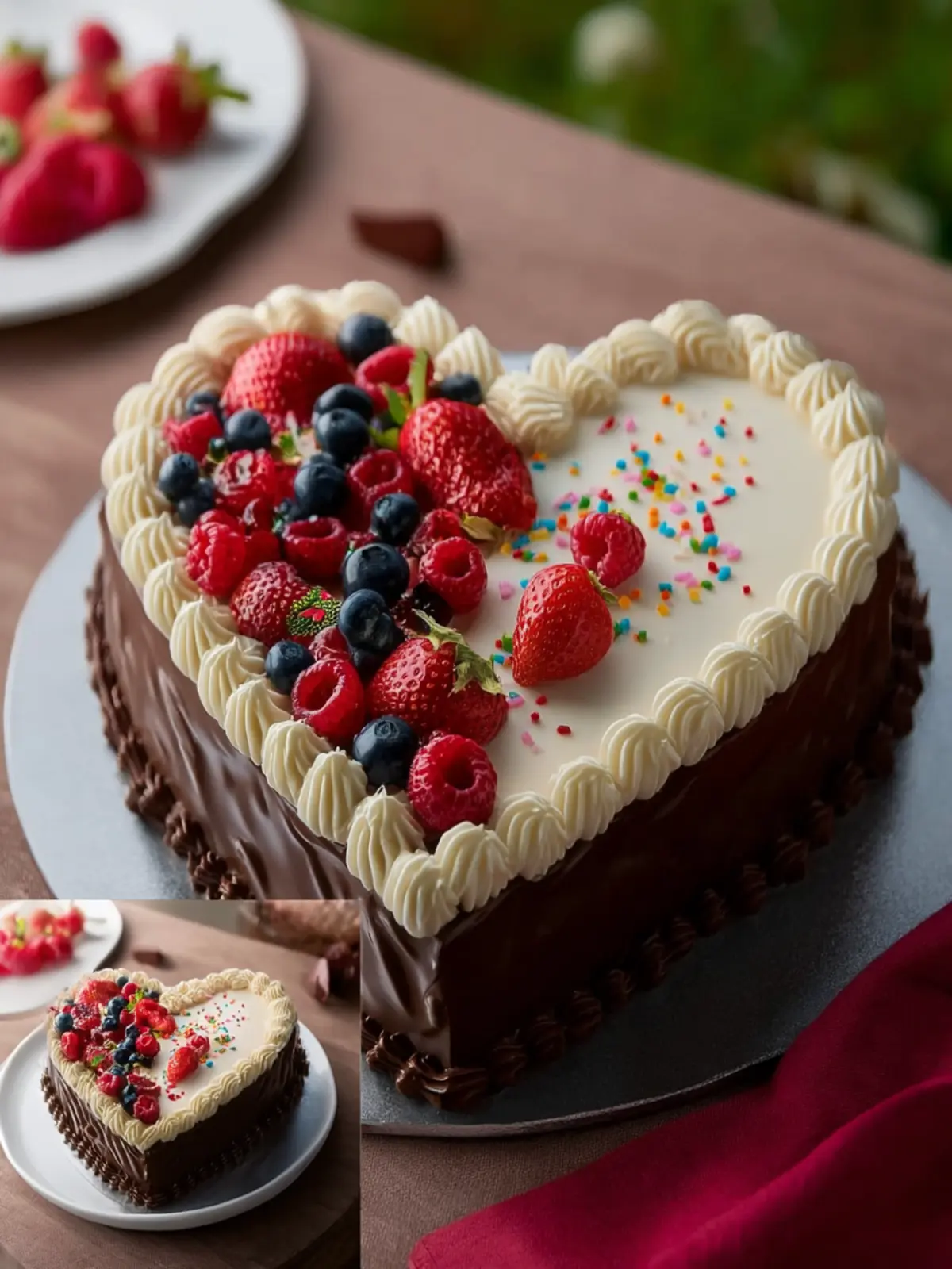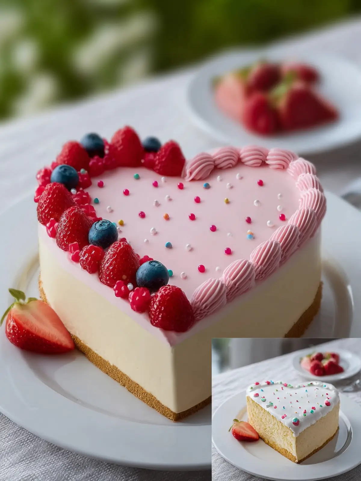 Decorative Plating: Use a large, colorful cake stand to highlight the heart shape. Surround the cake with vibrant edible flowers or fresh berries to create a stunning visual.