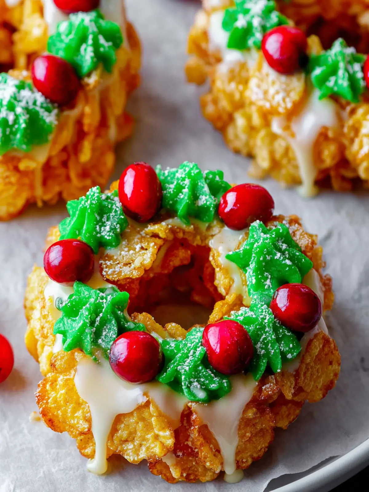 Delicious and festive cornflake wreaths perfect for celebrating holidays.