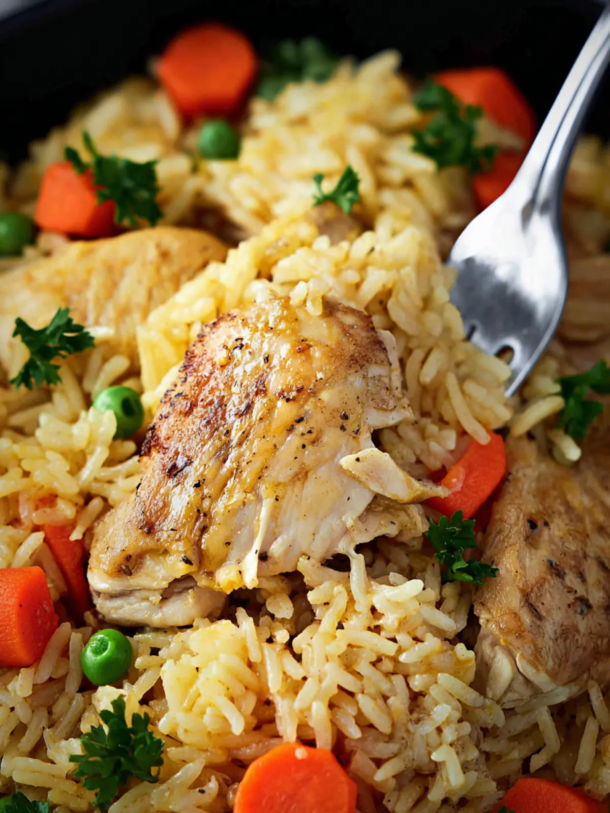 Pair with a Salad: A light side salad with mixed greens, cherry tomatoes, and a tangy vinaigrette complements the heartiness of the chicken and rice. It’s a refreshing contrast that balances the dish perfectly.