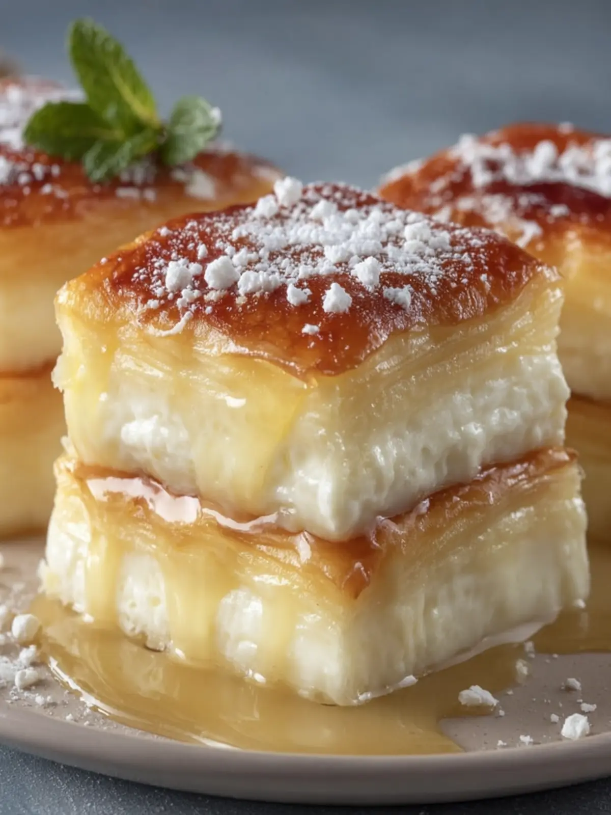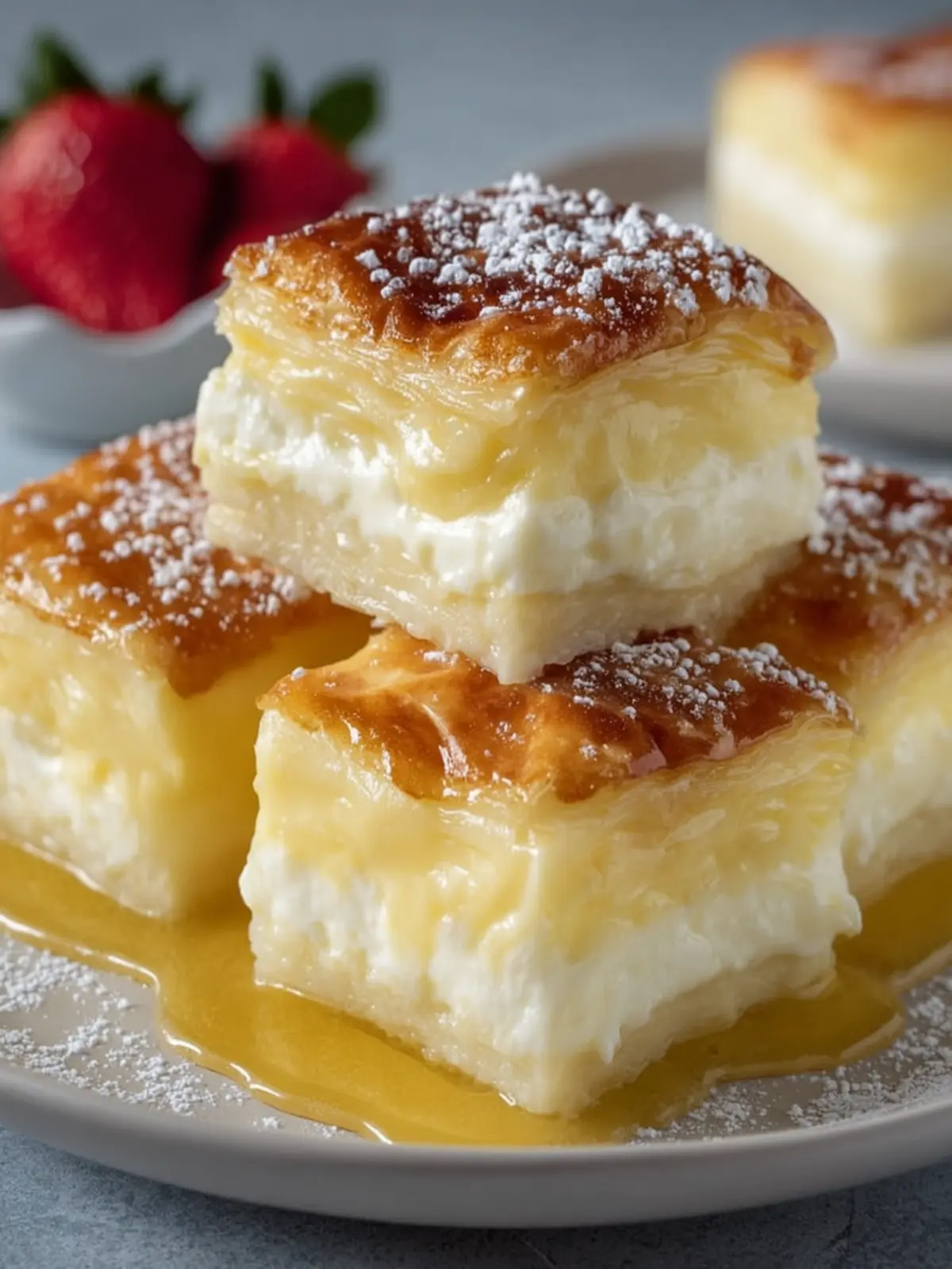 Powdered Sugar: A light dusting of powdered sugar at serving time adds just the right touch of sweetness, making these golden creamy custard squares simply irresistible.