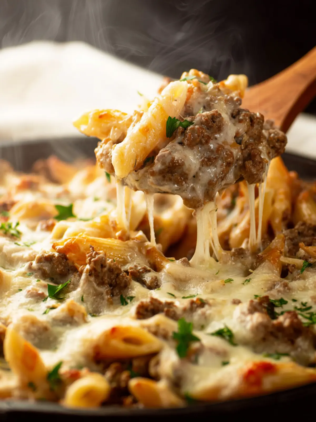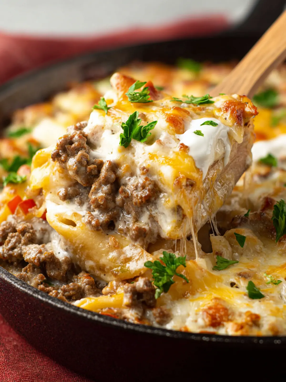 Family-Friendly Comfort: Ground beef offers a rich flavor profile that appeals to both kids and adults alike. Paired with the creamy Alfredo sauce and melted cheese, it creates a dish that brings everyone together at the dinner table.