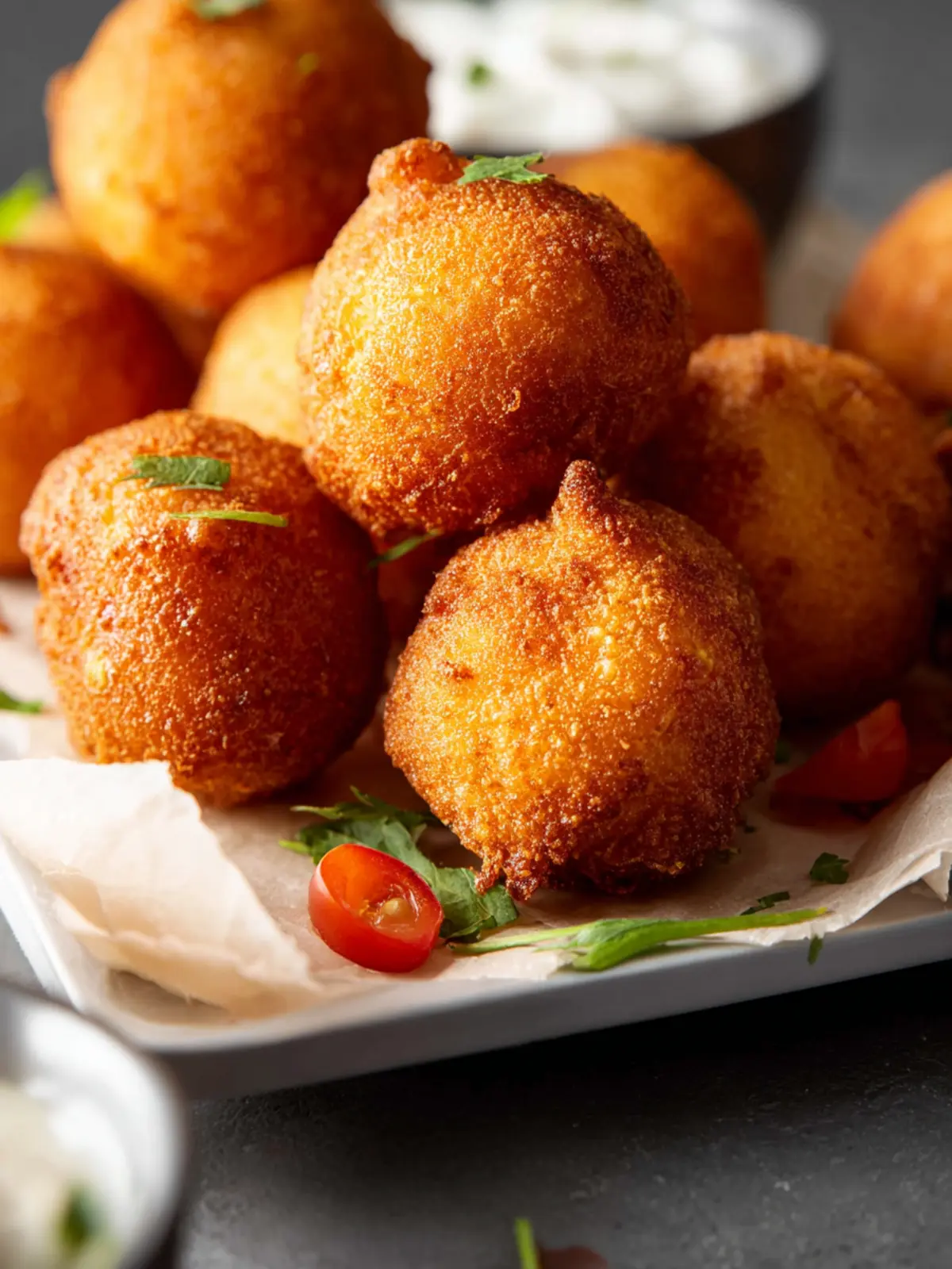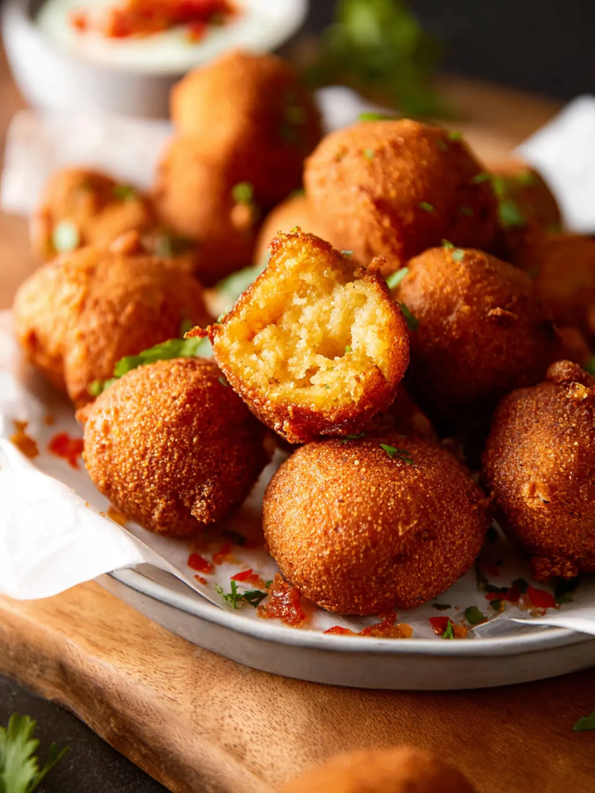 Delicious and crispy hush puppies made from cornmeal and served as a perfect side dish.