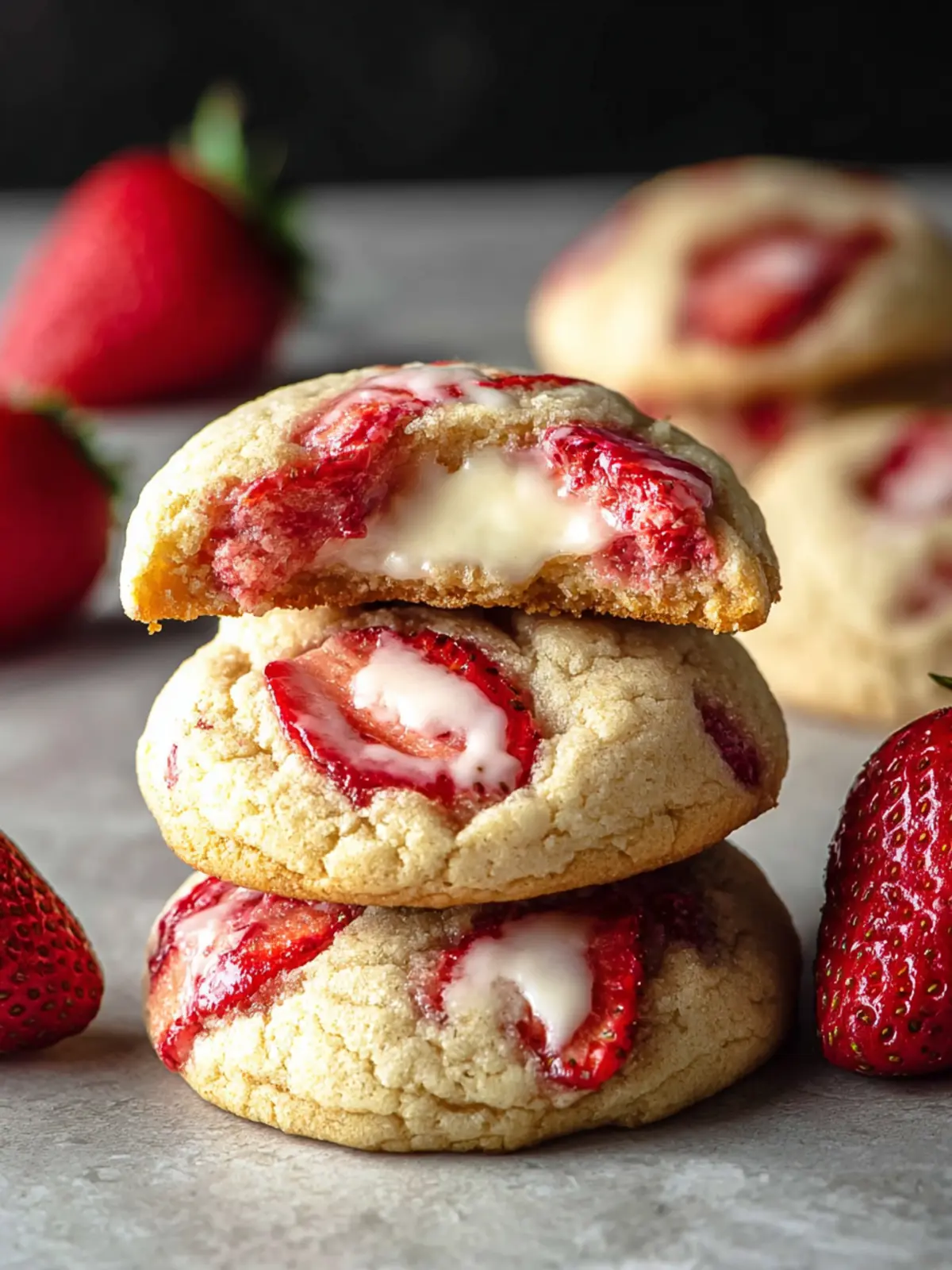 Delicious cookies made with fresh strawberries and cream cheese, perfect for any occasion!