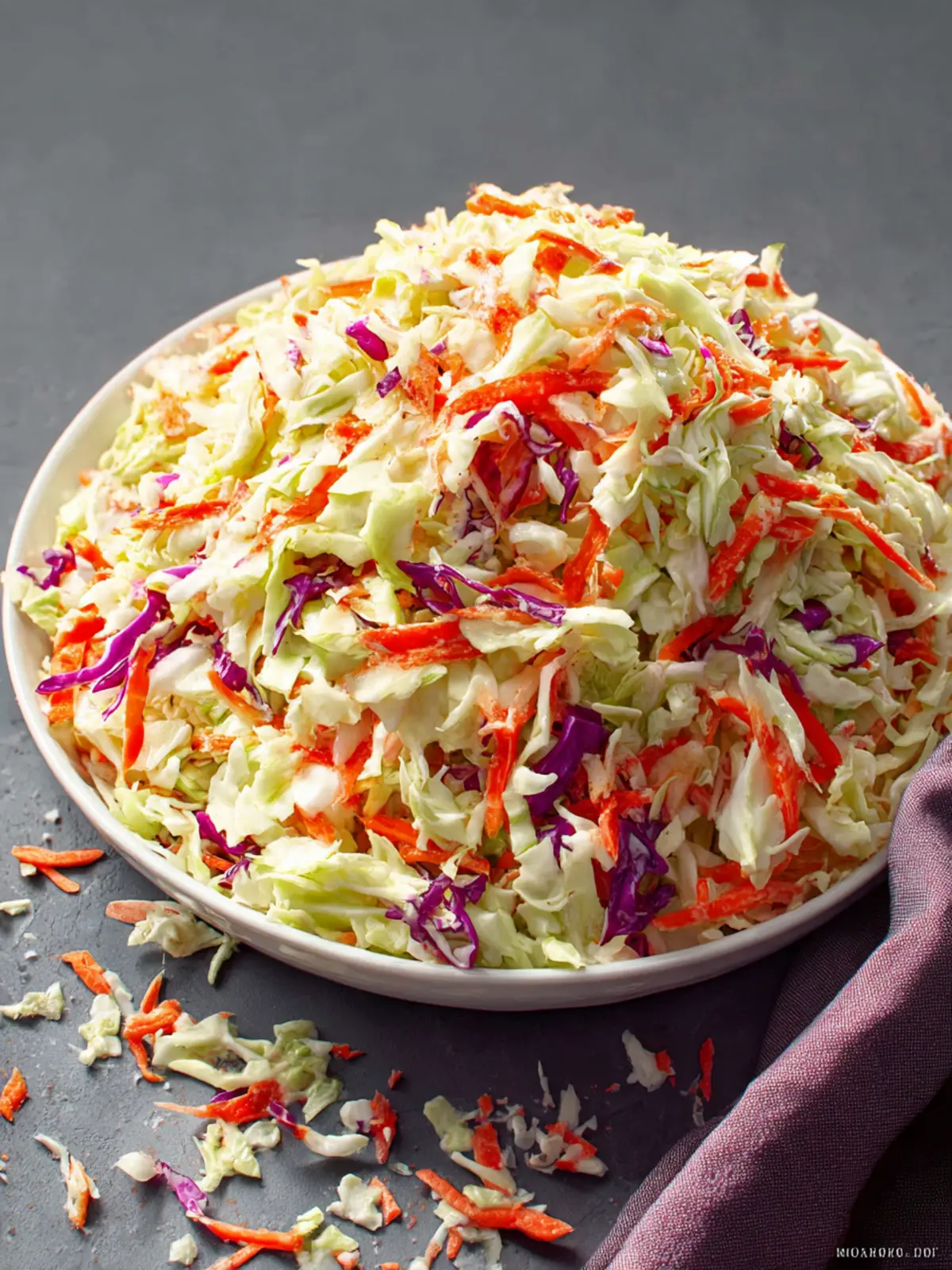 Fresh Cabbage: The star of the show, finely shredded green cabbage, offers a crisp bite that is essential to the coleslaw’s texture.