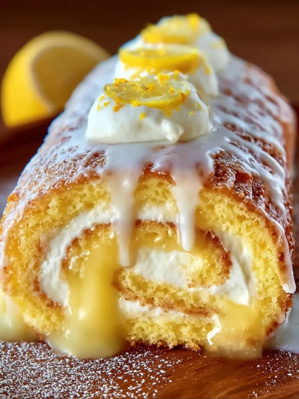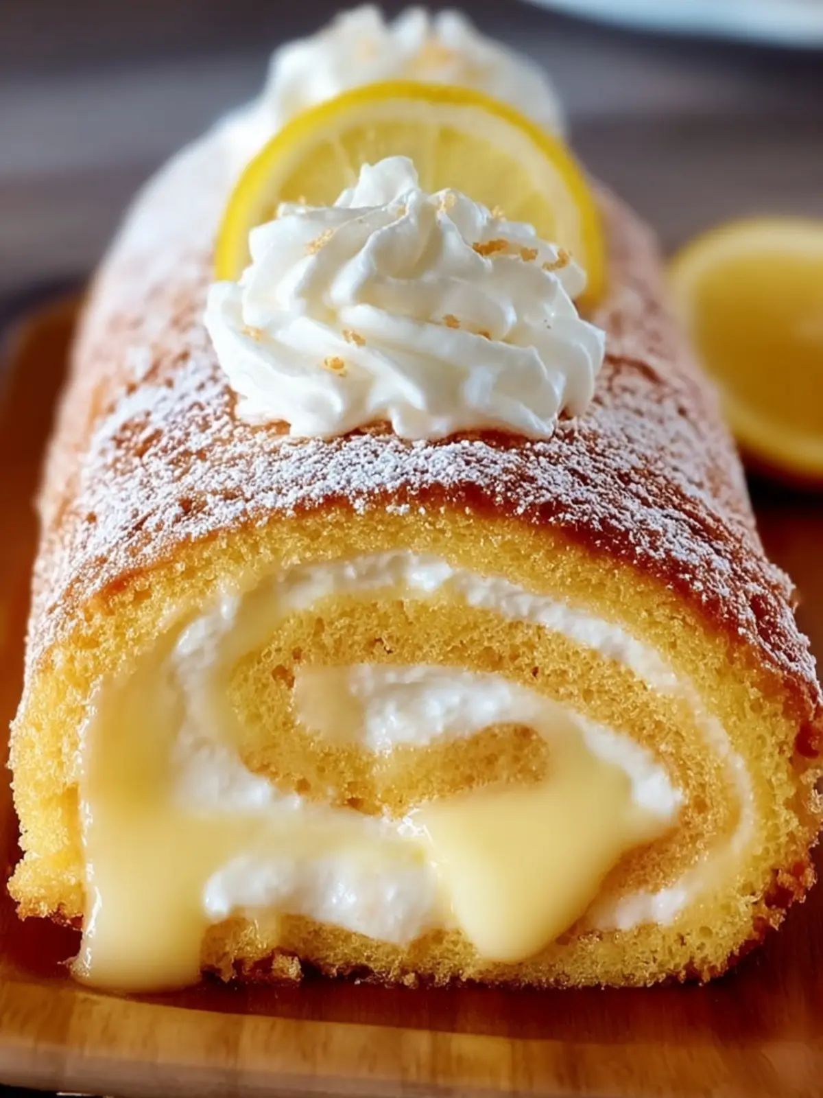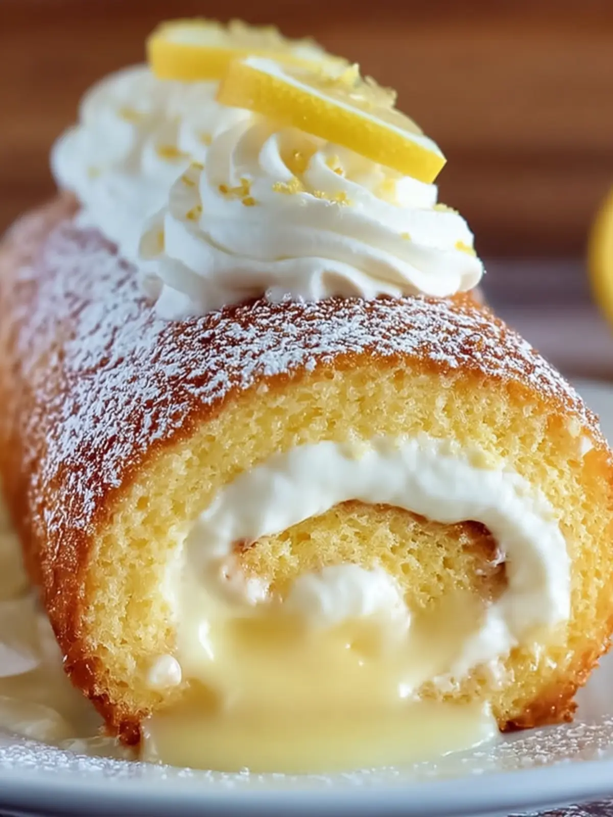 Finish: Transfer the Swiss roll to a serving platter and dust with powdered sugar. Garnish with additional lemon zest if desired.