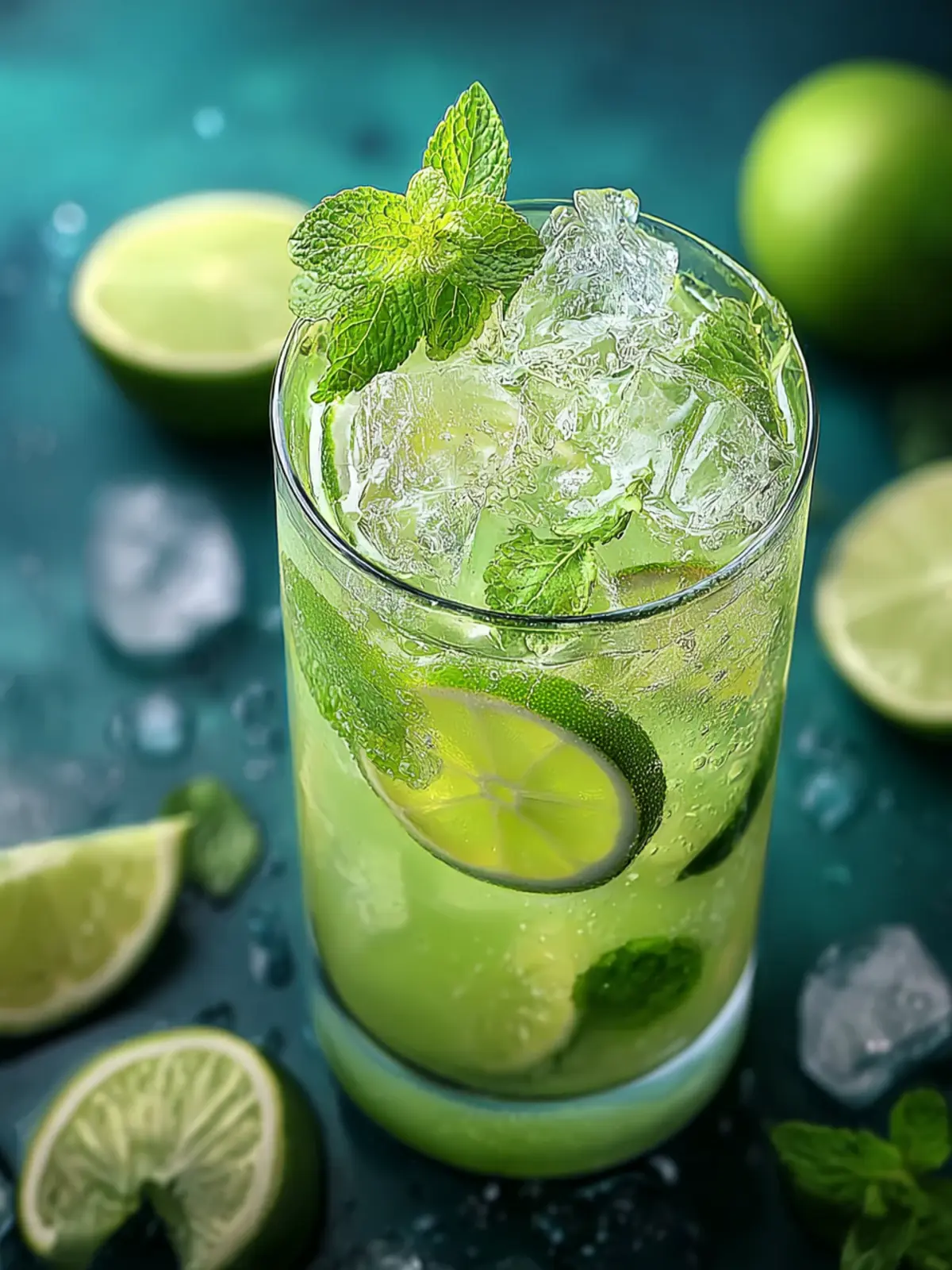 - Serve in glasses garnished with lime slices and additional mint leaves.