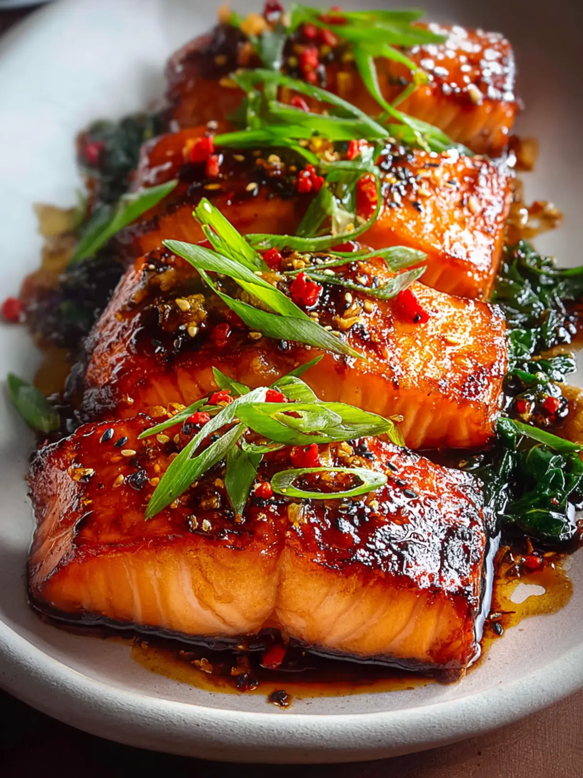 A delicious and spicy salmon recipe with a sweet and savory glaze.