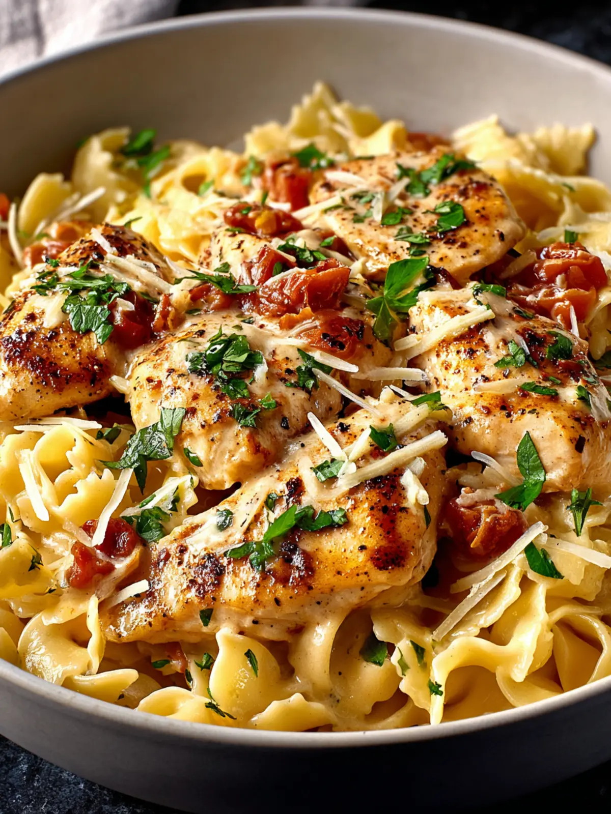 - Creamy Sauce: The heartbeat of this dish is a luscious cream sauce featuring garlic, sun-dried tomatoes, and a hint of parmesan – it’s rich and satisfying without being heavy.