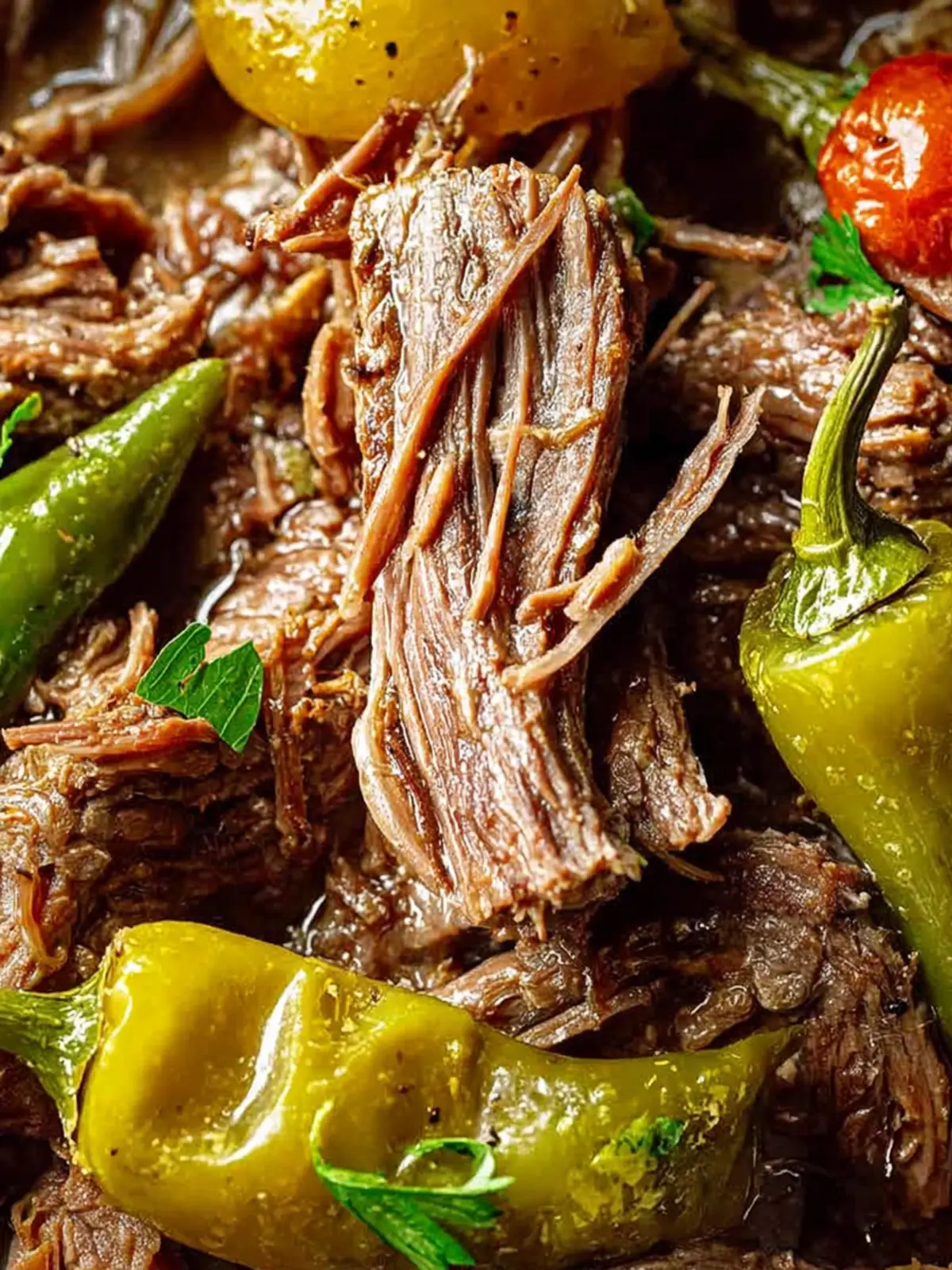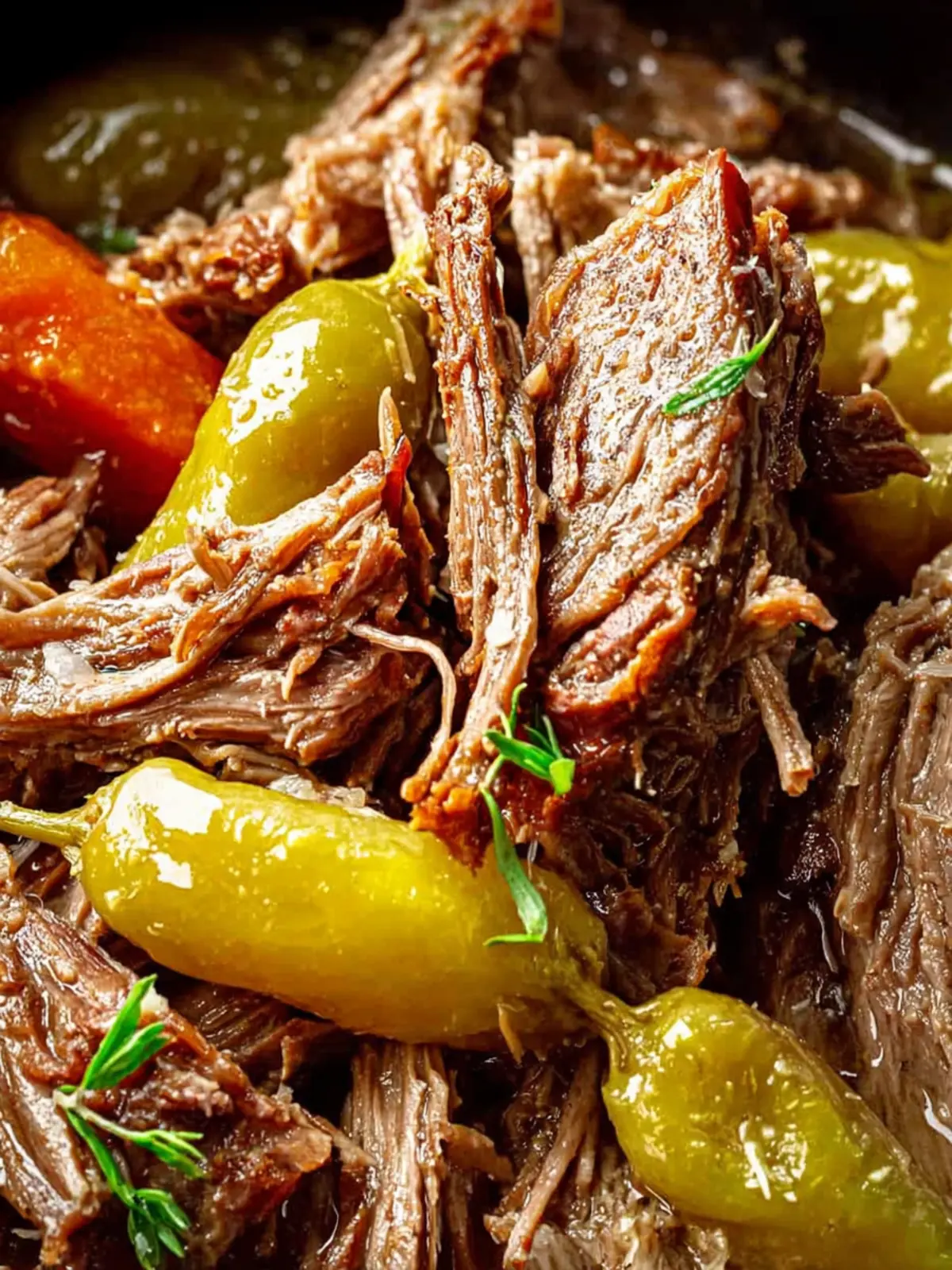 Peppers: Jarred pepperoncini adds a subtle heat and tang that contrast with the savory roast. They’re not overpowering but infuse the dish with a wonderful flavor profile.