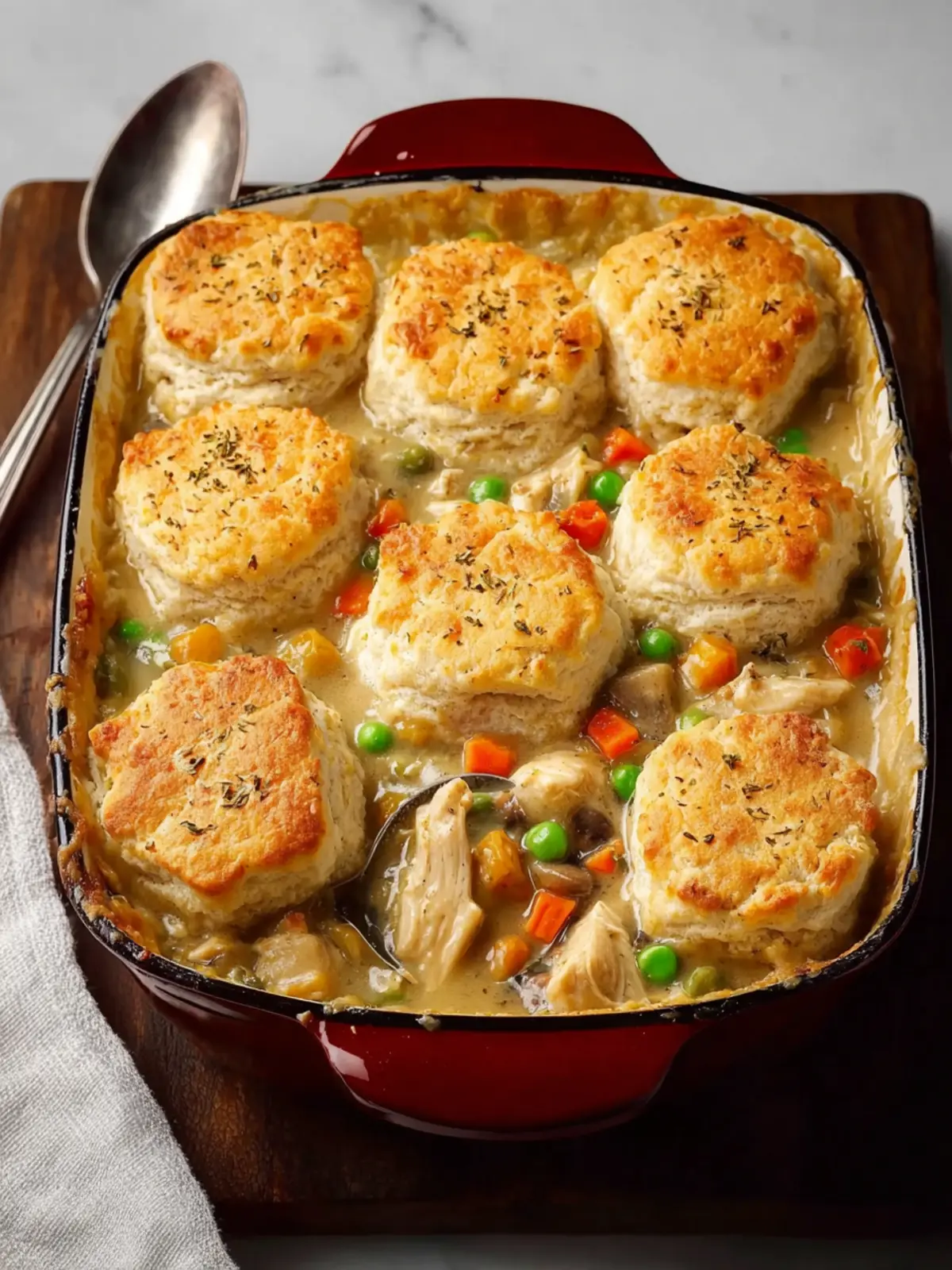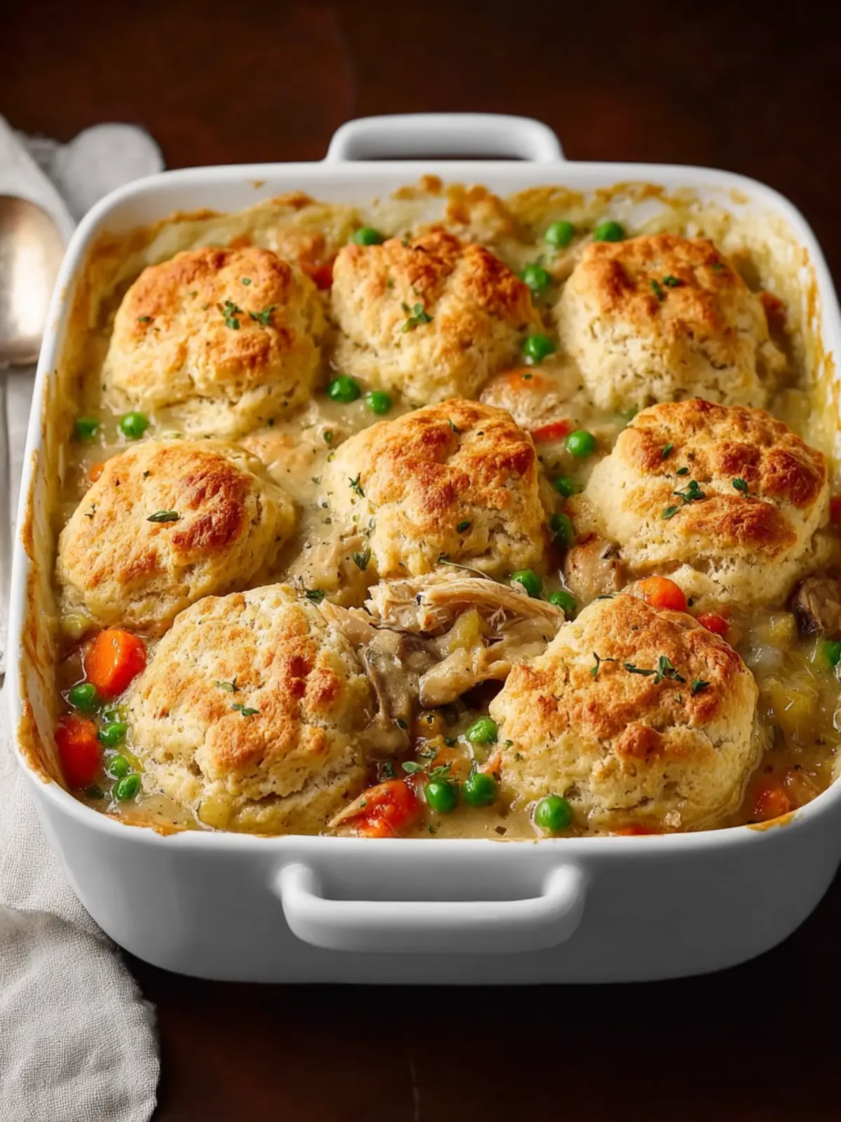 Don’t shy away from seasoning! A generous sprinkle of salt, pepper, and fresh herbs can elevate your Old-Fashioned Chicken and Biscuit Casserole. Fresh thyme or rosemary can introduce an aromatic touch that complements the dish beautifully.