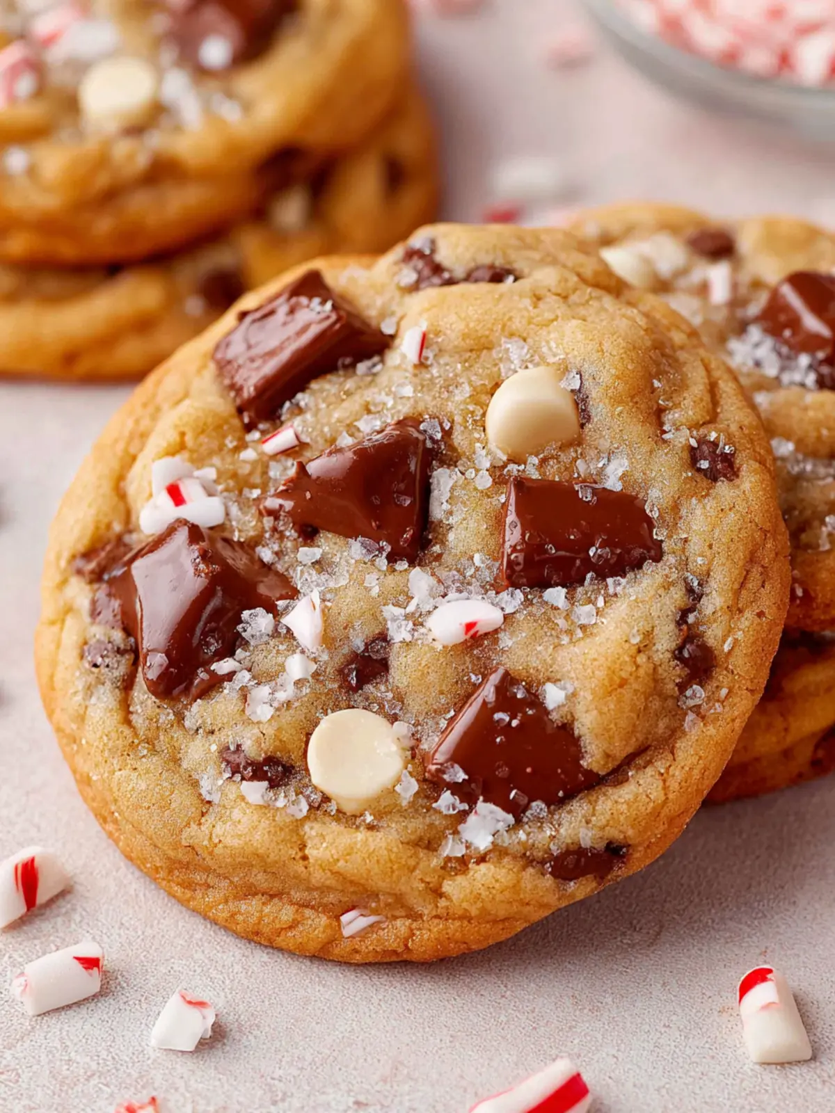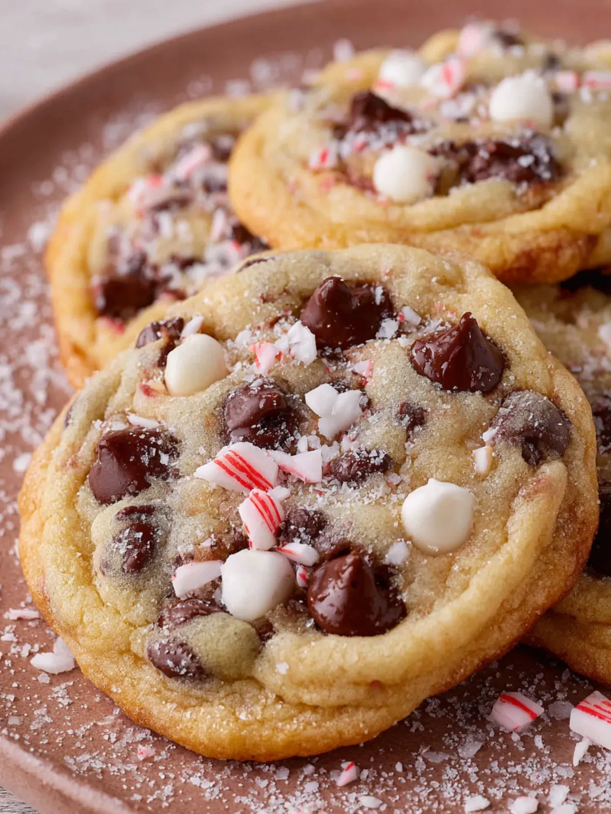 Delicious cookies with a delightful mix of chocolate and crushed candy canes, perfect for the holiday season!