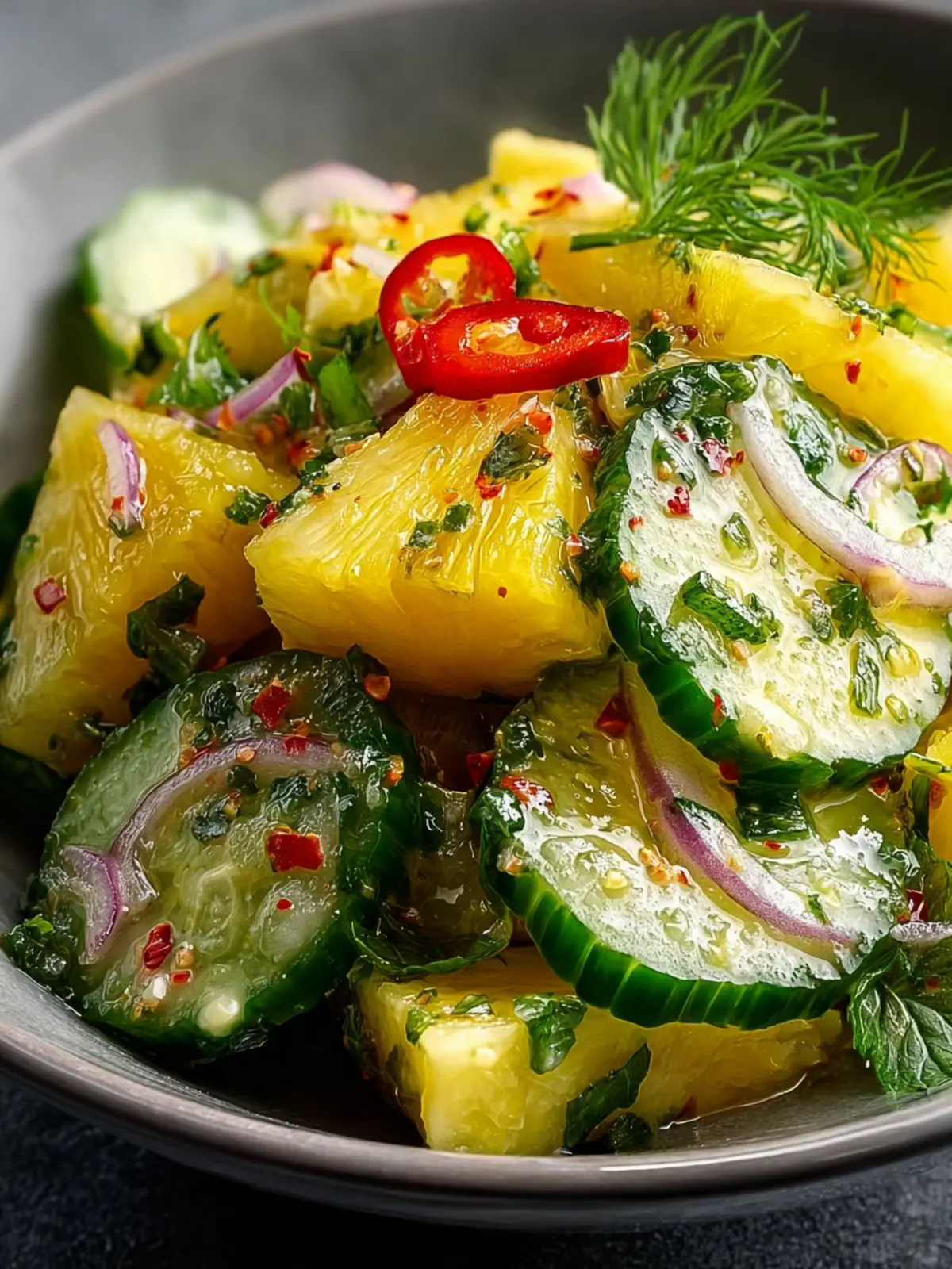 Experiment with fresh herbs like mint or basil to give your Pineapple Cucumber Salad a refreshing twist. A handful of torn basil leaves or finely chopped mint can bring an unexpected aromatic element that brightens the whole dish.