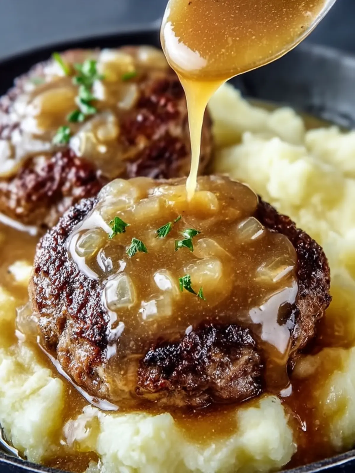 Nostalgic Flavors: This dish packs a punch of rich flavors that evoke memories of hearty family meals. The savory beef patties, combined with a luscious homemade gravy, bring warmth and satisfaction with every bite.