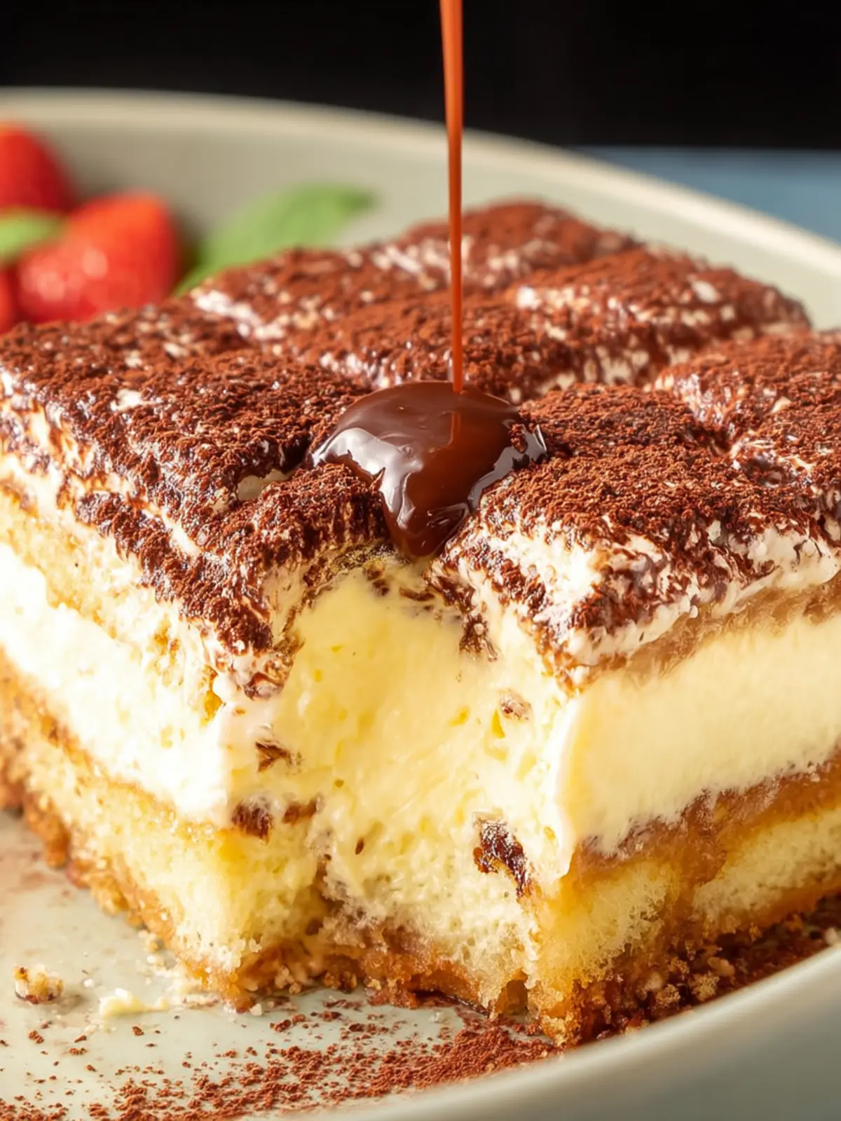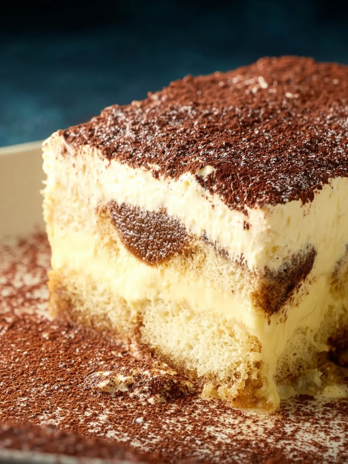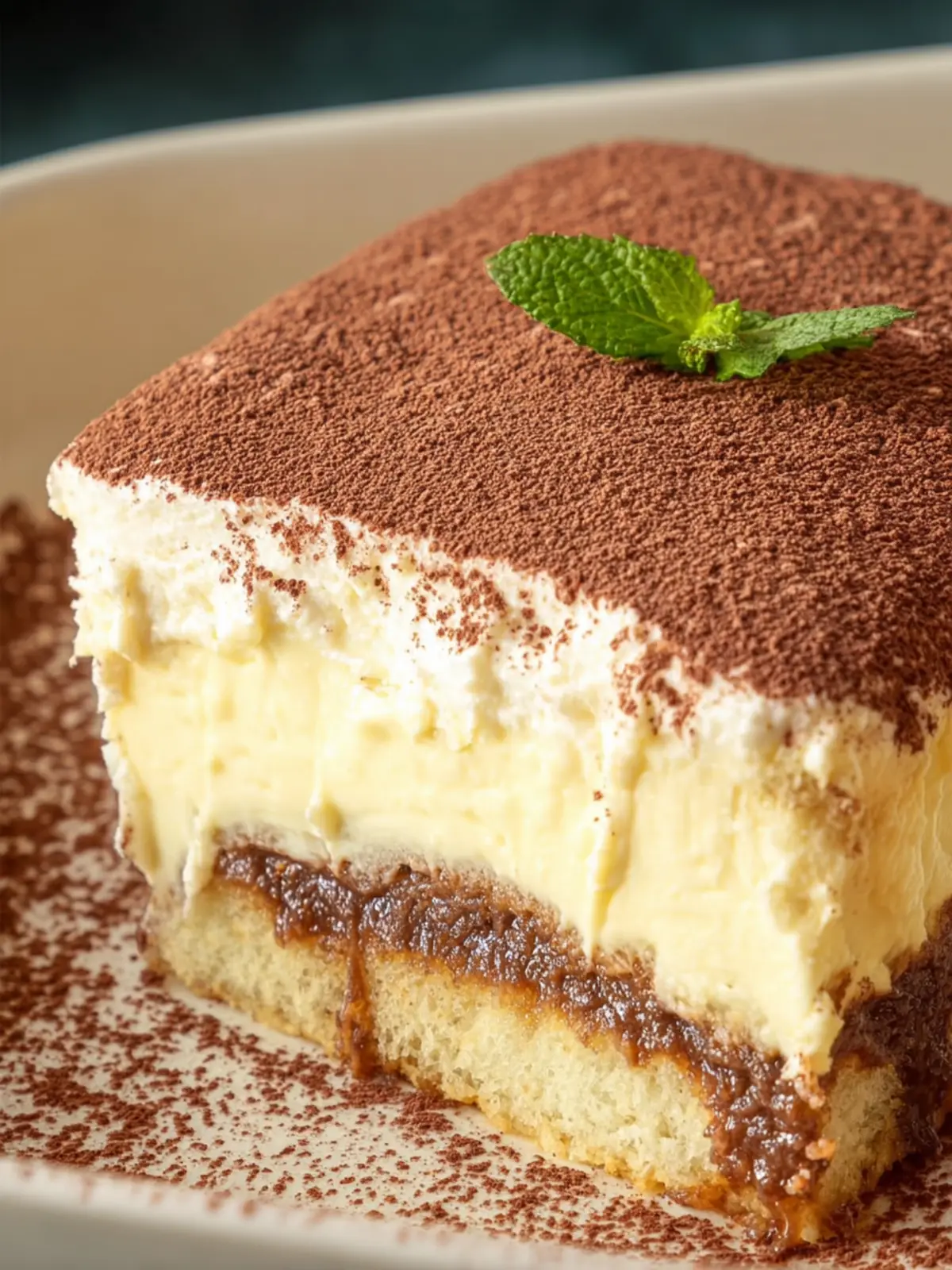 Cocoa Powder: To finish, a dusting of unsweetened cocoa powder adds that signature bittersweet touch, creating a beautiful contrast against the creamy layers.